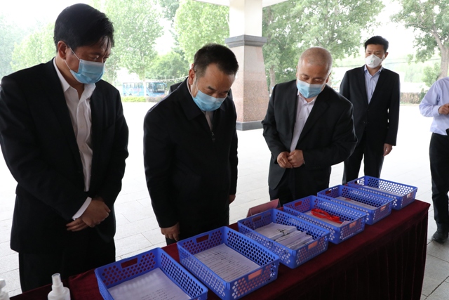 吕尔学在民航两会工作人员隔离点查看人员流行病史筛查情况统计表等资料。