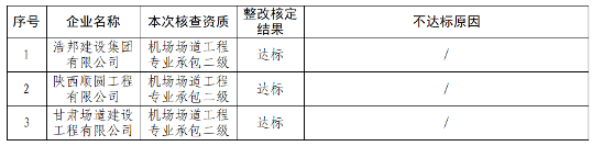 根据《关于开展2023年度民航专业工程建筑业企业资质动态核查的通知》(局发明电〔2023〕1340号)《关于开展2024年度民航专业工程建筑业企业资质动态核查的通知》(局发明电〔2023〕2770号)要求,机场司对部分追加企业的自查材料进行了公示,组织专班对相关情况开展了核实与核定,并对核定意见进行了公示,经对相关异议及举证材料进行复核,形成本次核定结论。