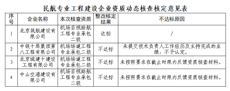 根据《关于开展2023年度民航专业工程建筑业企业资质动态核查的通知》《关于开展2024年度民航专业工程建筑业企业资质动态核查的通知》,机场司组织工作专班,依据相关法规和资质标准,对部分追加企业的自查材料及异议材料进行研究核定,形成本次核定意见,现进行公示。公示时间为2026年4月17日至4月23日。