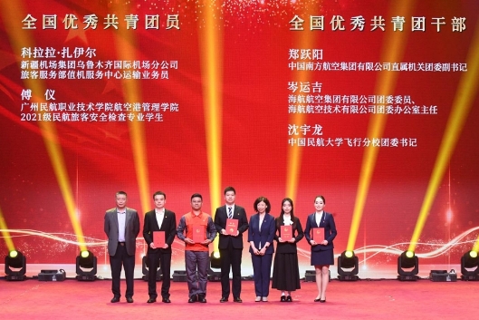 5月20日,全国民航团委在京举办“春夏秋冬·风雨彩虹——青春为中国式现代化挺膺担当”民航青年现场展示交流活动。民航局党组书记、局长宋志勇出席活动,为获得“中国青年五四奖章集体”和“新时代青年先锋”荣誉称号的先进集体和个人颁奖,并对民航青年寄语。民航局党组成员、副局长胡振江、韩钧、马兵、梁楠出席活动并为“两红两优”先进集体和个人颁奖。