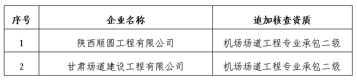 根据《关于开展2023年度民航专业工程建筑业企业资质动态核查的通知》(局发明电〔2023〕1340号)及《关于开展2024年度民航专业工程建筑业企业资质动态核查的通知》(局发明电〔2023〕2770号)要求,现将部分追加核查企业的材料予以公示(敏感信息已作处理),公示时间为2026年1月6日至2026年1月12日。